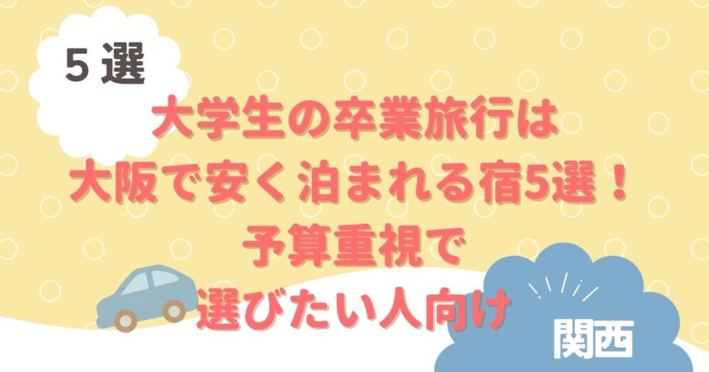 大学生の卒業旅行で大阪を選ぶなら、遊びやすさと宿の安心感をどう両立するかがポイントです。