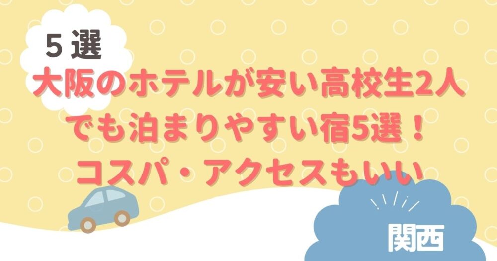 この記事では大阪で「高校生2人でも泊まりやすい」安いホテルを厳選しました。