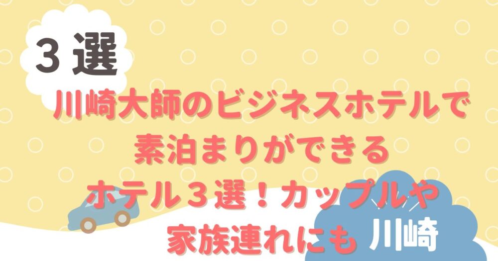 この記事では川崎大師周辺のビジネスホテルで素泊まりができるホテルを3つご紹介いたします。